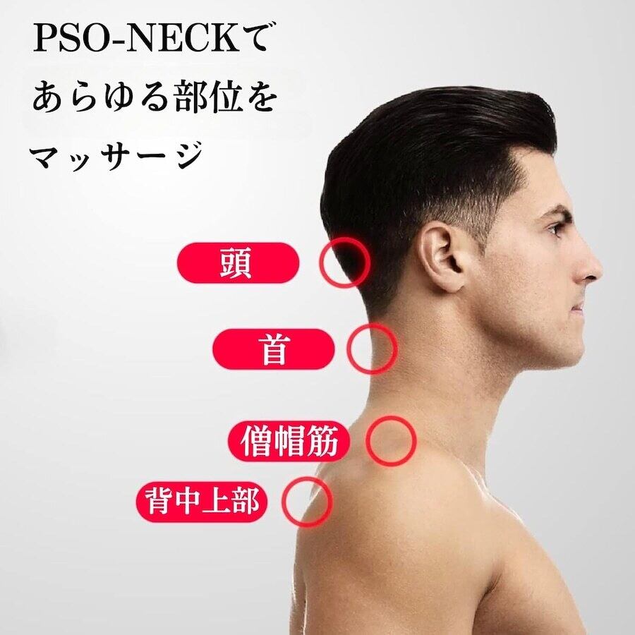 PSO-NECK®(ソー・ネック)は、頭や首、肩のコリやストレスを解消。頭痛や偏頭痛、顎関節症、副鼻腔炎、めまいや目のかすみ、首ポキなどに効いて、FEEL PSO GOOD:いい感じ!
